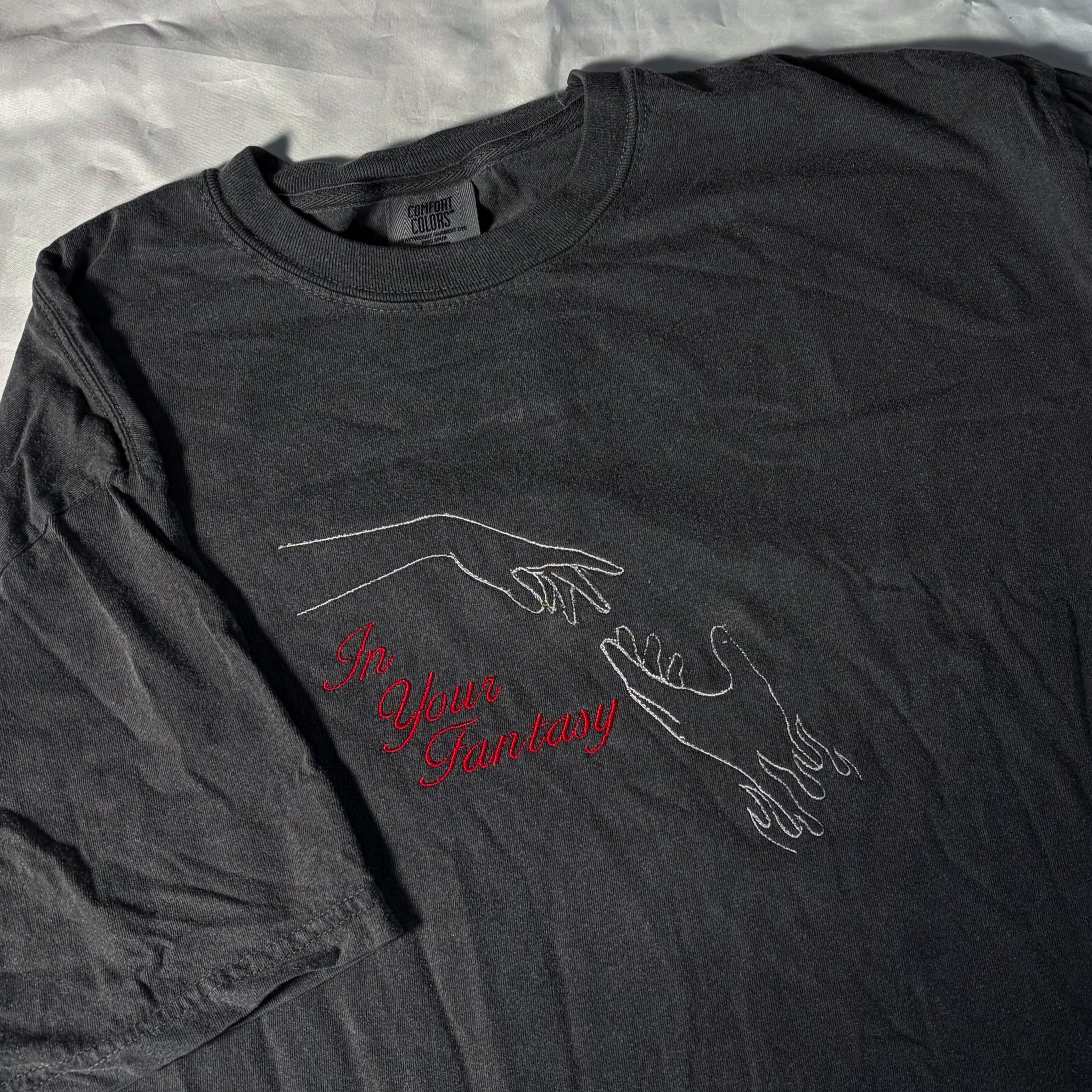 This Ateez inspired design is embroidered with white and red thread onto pepper t-shirts (pictured), or black crewnecks or tees!